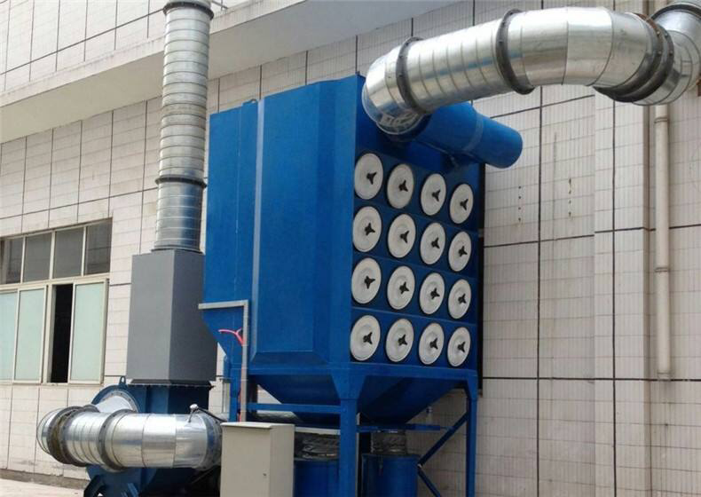 濾筒的工作原理與普通的布袋除塵器是一樣的。含塵氣體進入除塵器灰斗后,由于氣流斷面突然擴大及氣流分布板作用,氣流中一部分粗大顆粒在動和慣性力作用下沉降在灰斗;粒度細、密度小的塵粒進入濾塵室后,通過布朗擴散和篩濾等組合效應(yīng),使粉塵沉積在濾料表面上,凈化后的氣體進入凈氣室由排氣管經(jīng)風(fēng)機排出。